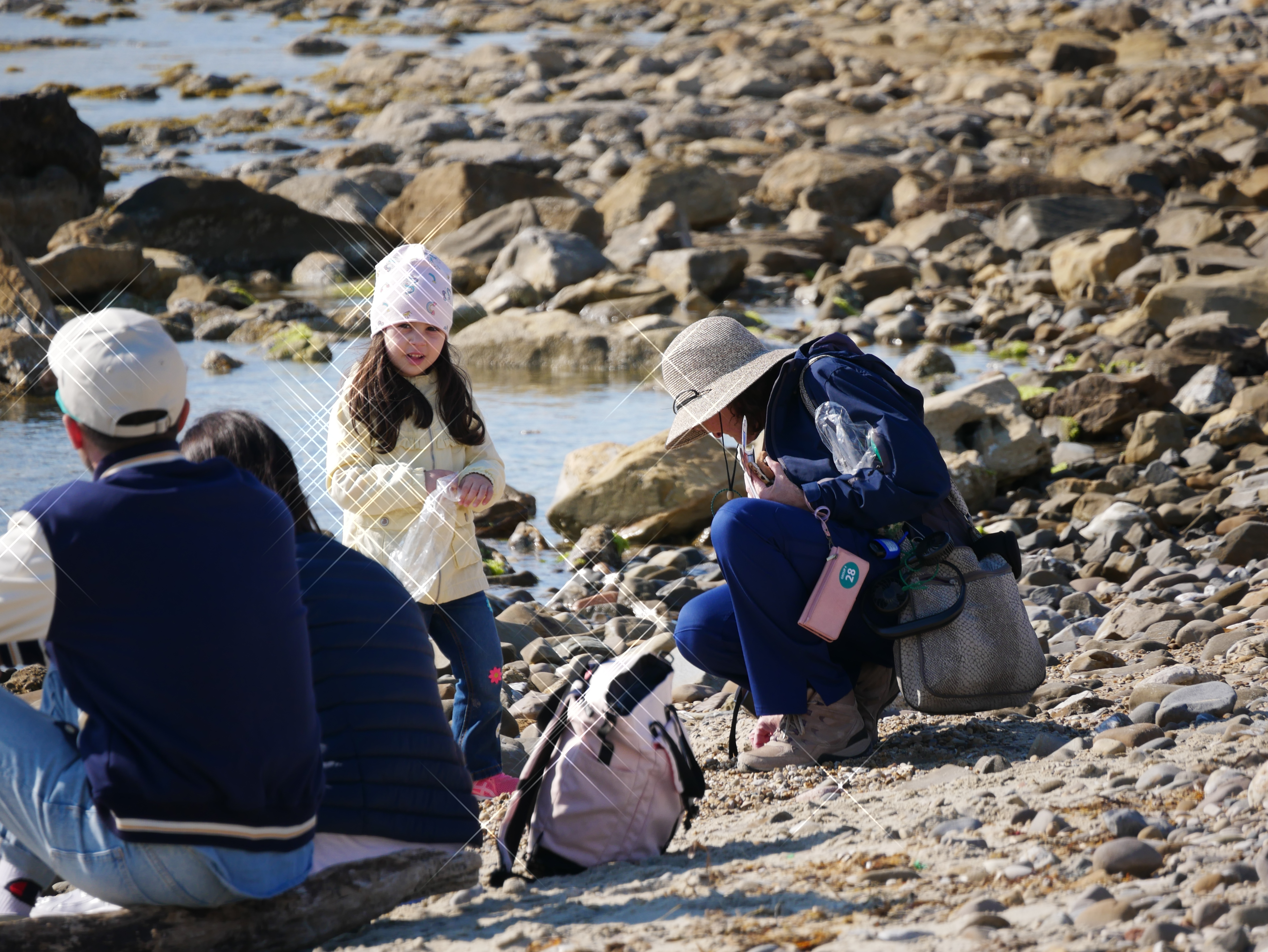 Toni making friends. Her Grampa translated between Toni and the little girl as they were both looking for treasures
